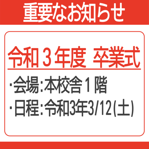 - 卒業式の会場は本校(教室)で実施となります。